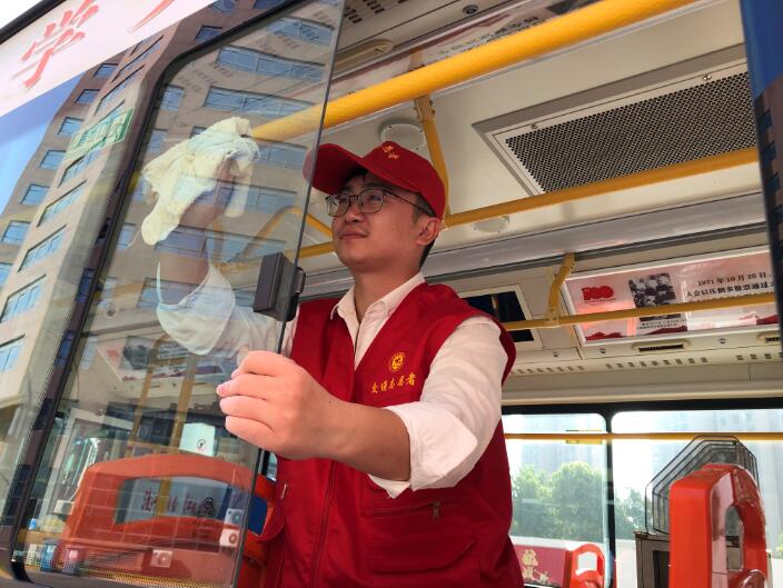 志愿者們看著煥然一新的車子說道:“干凈的車廂環境不僅讓我們自己心情變好了,我相信乘客坐上我們的車也會感覺舒適!為乘客提供一個干凈整潔的乘車環境,讓他們可以好好享受國慶假期!”